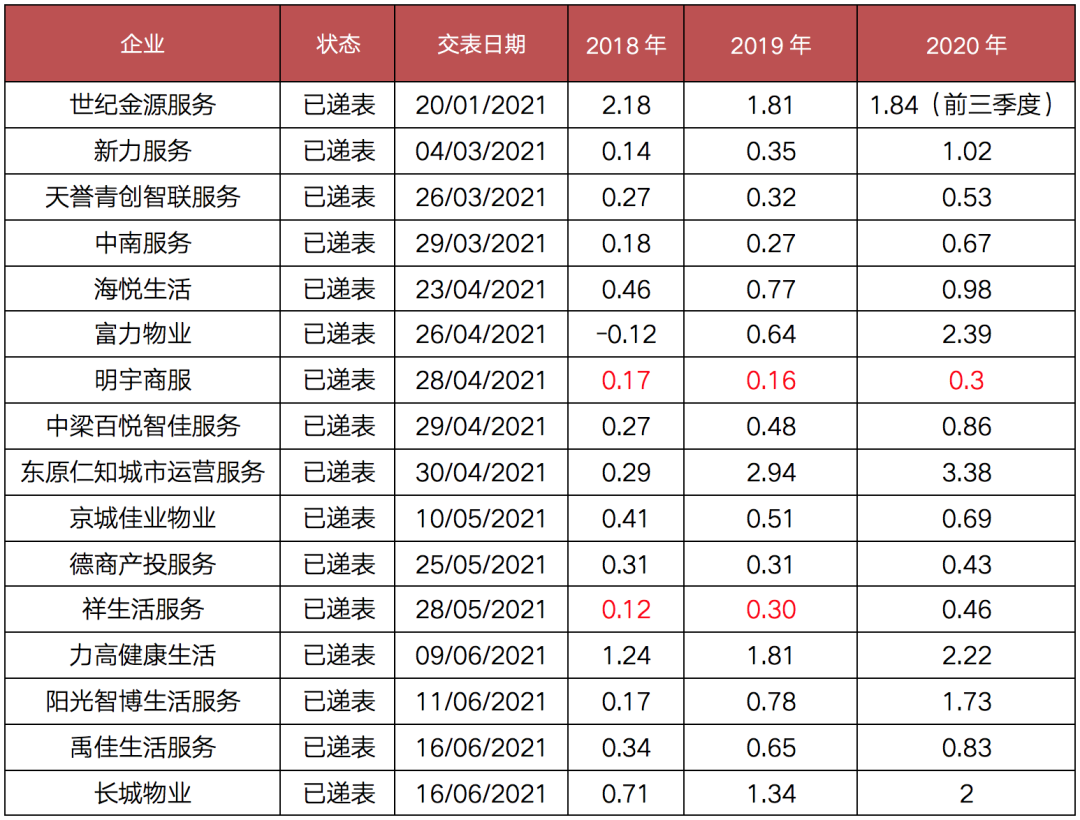 按照新規,正在排隊的16家物企中將直接影響2家,分別是明宇商服和祥生活服務,如果年底前不能通過聆訊,在2022年1月1日后重新遞表,就要受到新規的制約。在距離年底還有半年多的時間內,預計下半年會有更多中小物管集中闖關,趕在年底前遞表。