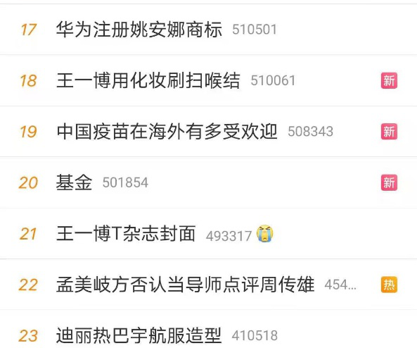 打開微博一看,果不其然,微博熱搜第20名。環(huán)顧基金上下,是王一博、孟美岐、華為小公主姚安娜等流量人物。