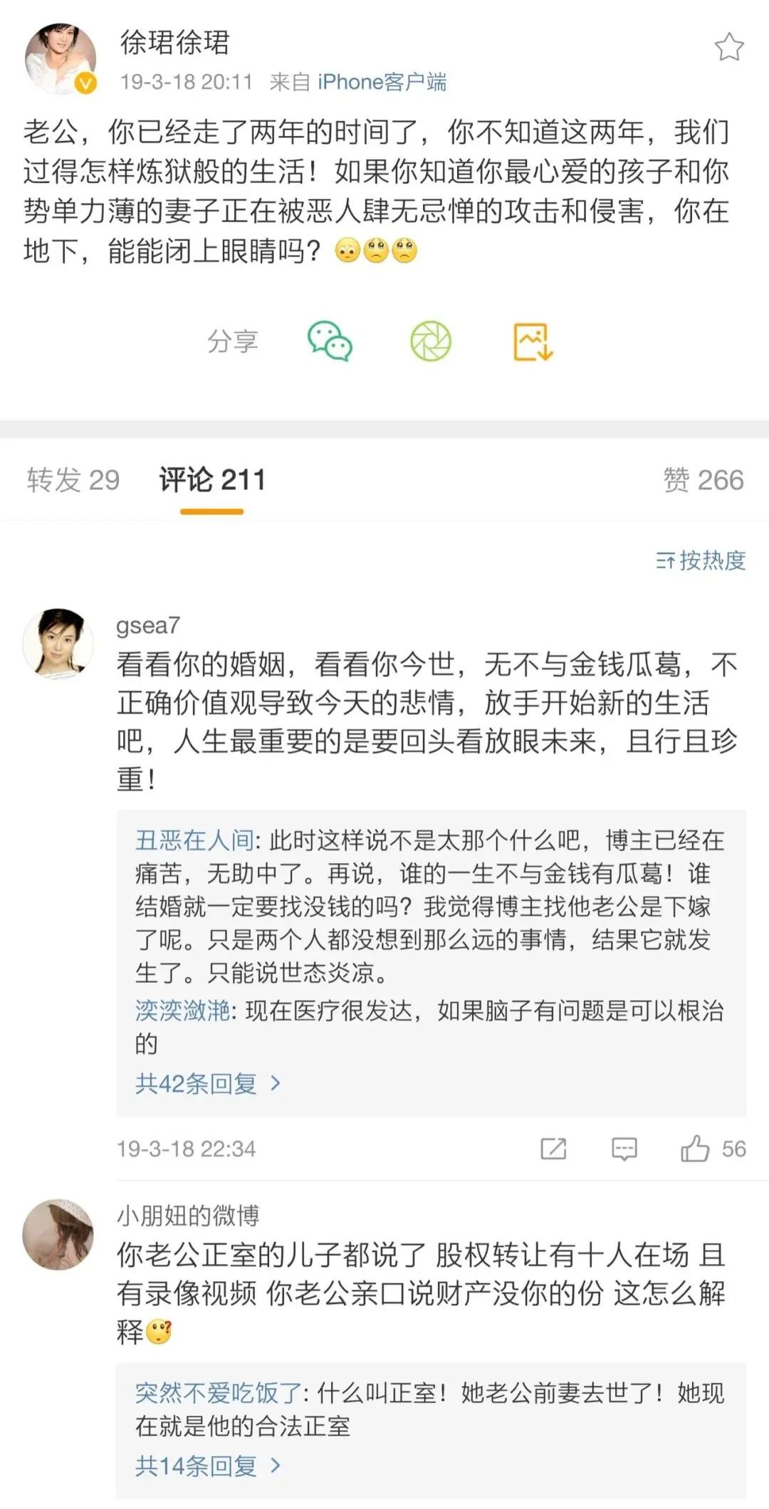 二審期間徐珺發(fā)微博懟繼子:自你父親去世后,你從未來看過弟弟妹妹一眼,更沒給過一分錢……搶起弟弟妹妹的財(cái)產(chǎn)來毫不心軟!