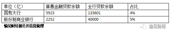 我們挑選了一家“腰部”大行和一家“腰部”股份制商業銀行,這兩家銀行2019年財報顯示,按照央行定向降準口徑下普惠金融貸款標準測算,兩家銀行普惠金融貸款占貸款總盤子的比重也都在4%以上。
