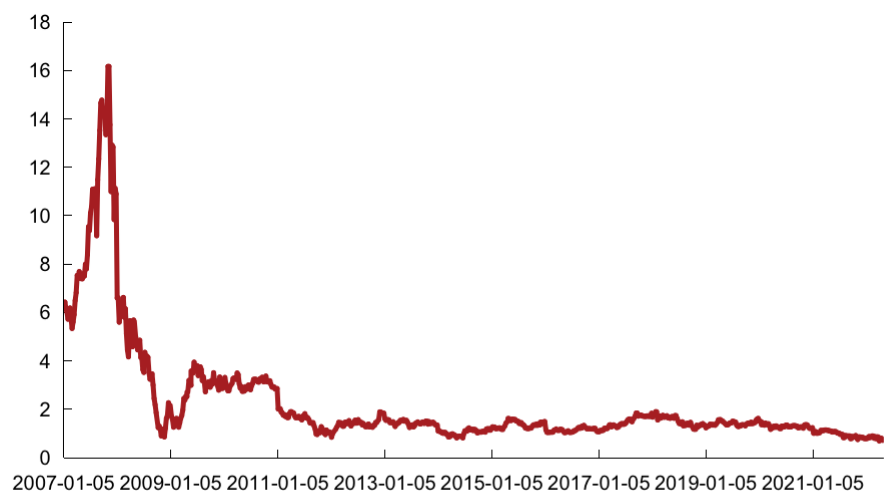房股領先指數成分股PB相對恒指成分股4月出現較大幅度回落,月末至0.2%, 總體維持低位。