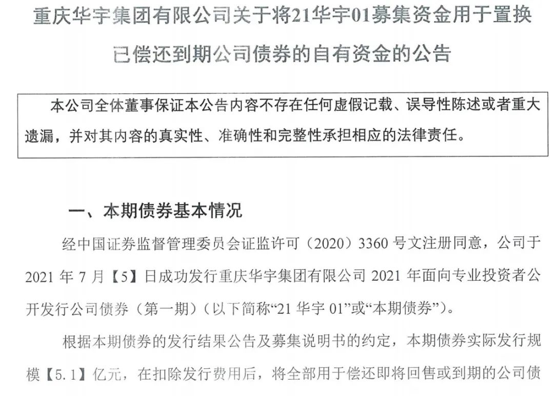 7月9日,華宇集團2021 年面向專業投資者公開發行的公司債券(第一期)于在上交所上市。