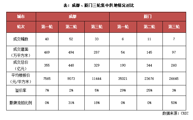 02 廈門:土拍規則全面升級、三輪土拍熱度寒冬降臨,半數地塊遭遇撤牌或流拍