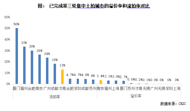 另外,對比已完成年內最終輪的城市來看,廈門的熱度也屬于中低水平。其中,廈門的流拍率更是位居11個城市之首,高達50%,是三輪土拍中撤牌流拍地塊比例最高的城市。