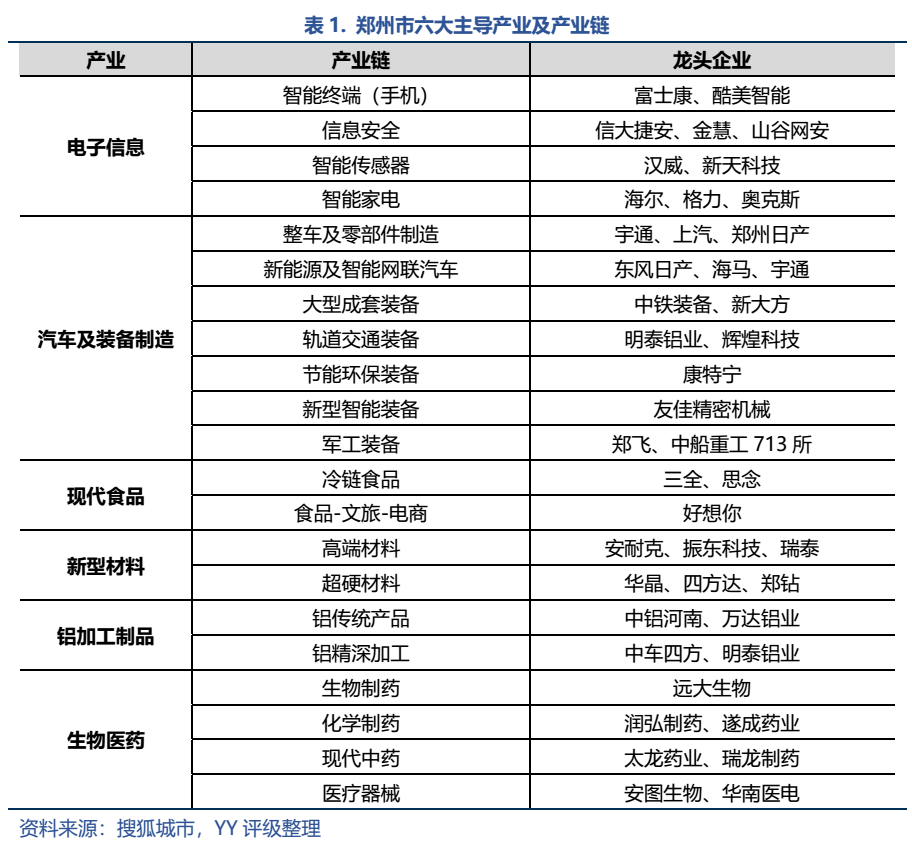 分產(chǎn)業(yè)來(lái)看,鄭州目前形成了六大主導(dǎo)產(chǎn)業(yè),分別是電子信息、汽車及裝備制造、現(xiàn)代食品、新型材料、鋁加工制品和生物醫(yī)藥產(chǎn)業(yè)。2020年全市六大主導(dǎo)產(chǎn)業(yè)增加值增長(zhǎng)6.3%,成為拉動(dòng)全市工業(yè)增長(zhǎng)的中流砥柱;2021年六大主導(dǎo)產(chǎn)業(yè)同比增速更是高達(dá)33.3%,增長(zhǎng)強(qiáng)勁。