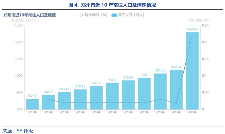 其次,鄭州在省內(nèi)幾乎“一城獨(dú)大”。鄭州的基礎(chǔ)設(shè)施、公共服務(wù)等資源、以及發(fā)展?jié)摿υ谑?nèi)都處于遙遙領(lǐng)先的地位,因此鄭州實(shí)質(zhì)享受了河南省乃至整個(gè)中原城市群的絕大部分人口增長(zhǎng)。從河南省10年來(lái)的人口增長(zhǎng)數(shù)據(jù)來(lái)看,全省常住人口增量中有74.39%的增長(zhǎng)在鄭州。
