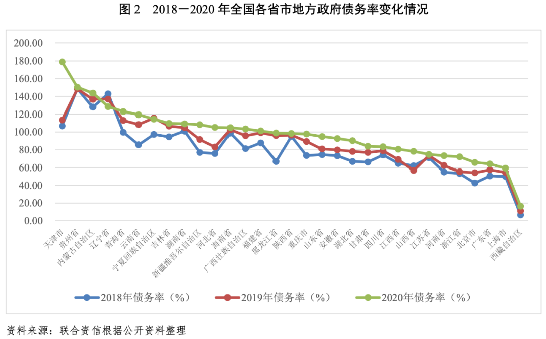 2018-2020年,遼寧省政府債務規模持續增長,分別為8596.30億元、8885.09億元和9257.11億元。截至2020年底,遼寧省政府債務余額居全國第十。同期,遼寧省負債率持續小幅上升,分別為33.96%、35.67%和36.86%;2020年,遼寧省負債率在全國各省(自治區、直轄市)中排名靠后(按照債務負擔輕重排序)。2020年,遼寧省政府債務率在全國各省(自治區、直轄市)中排名靠后(按照償債能力強弱排序)。整體看,遼寧省政府負債水平較高,債務負擔較重。