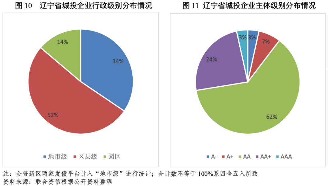 遼寧省存續發債城投企業較少,發債企業主體信用級別以AA為主。