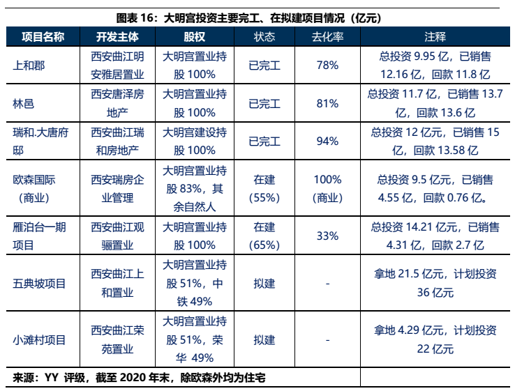 3) 大明宮投資母公司2019-2020年增加的66億元有息債務,多通過往來款形式沉淀于相關城投類資產(48.69億),地產等產業相對較少。但需要注意到的一點在于21年公司拿地兩宗,按權益來看出資規模在12億元左右,產業類資金體量有所增長。