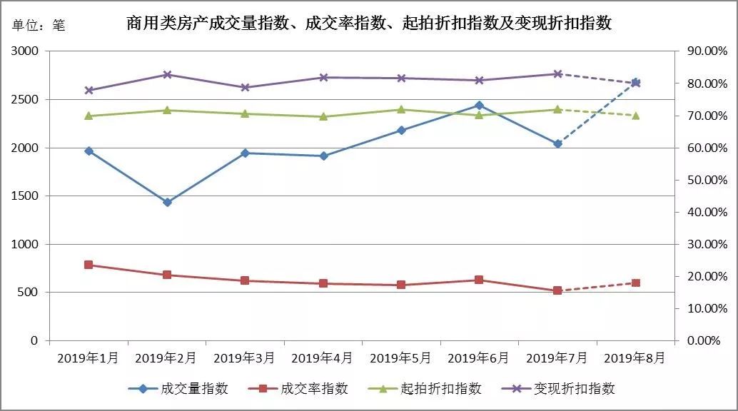 (一) 商用類房產:成交量、成交率雙降,起拍折扣指數、變現折扣指數微升