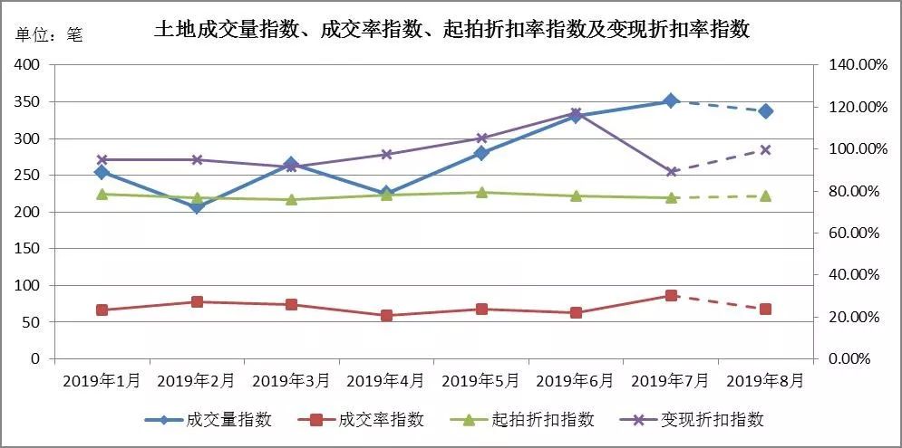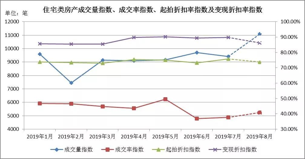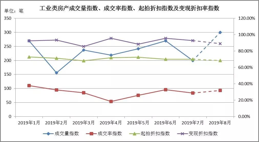 八月預測:成交量在312至363筆左右,成交率指數區間[22.46%,25.25%],起拍折扣指數區間[76.74%,78.54%],變現折扣指數區間[95.70%,103.15%]。
