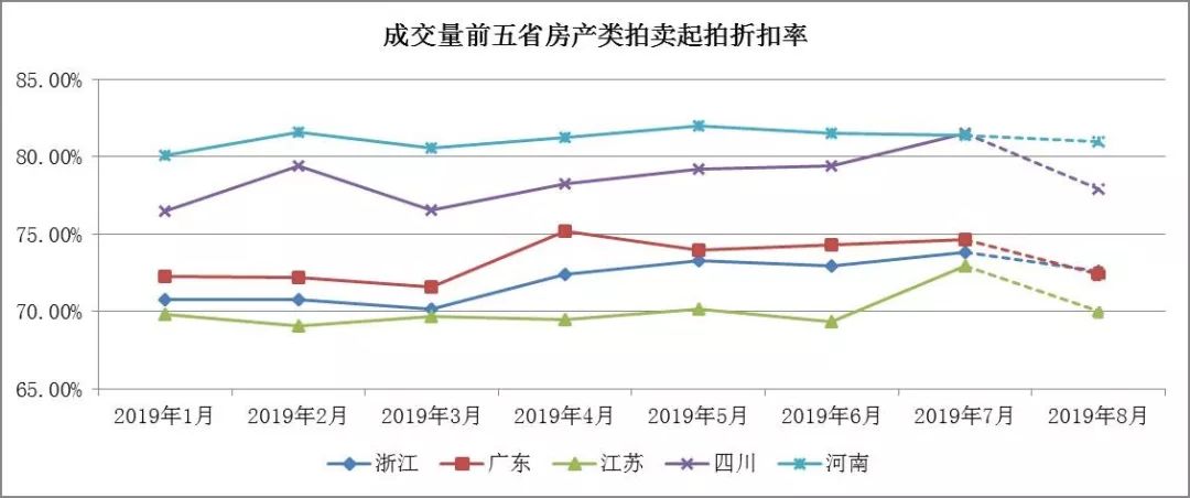 (三) 起拍折扣指數:江蘇、四川、浙江、廣東小幅增長,河南省出現微降趨勢
