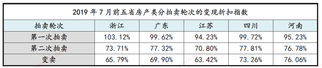 分拍賣輪次的五省變現折扣指數: