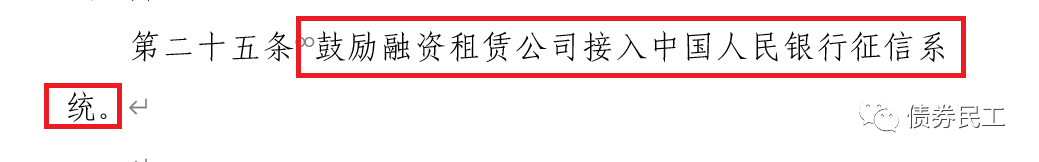 根據廣東省地方金融監管局2021年11月19日印發的《廣東省融資租賃公司監督管理實施細則(征求意見稿)》,第二十五條明確規定,“鼓勵融資租賃公司接入中國人民銀行征信系統”。
