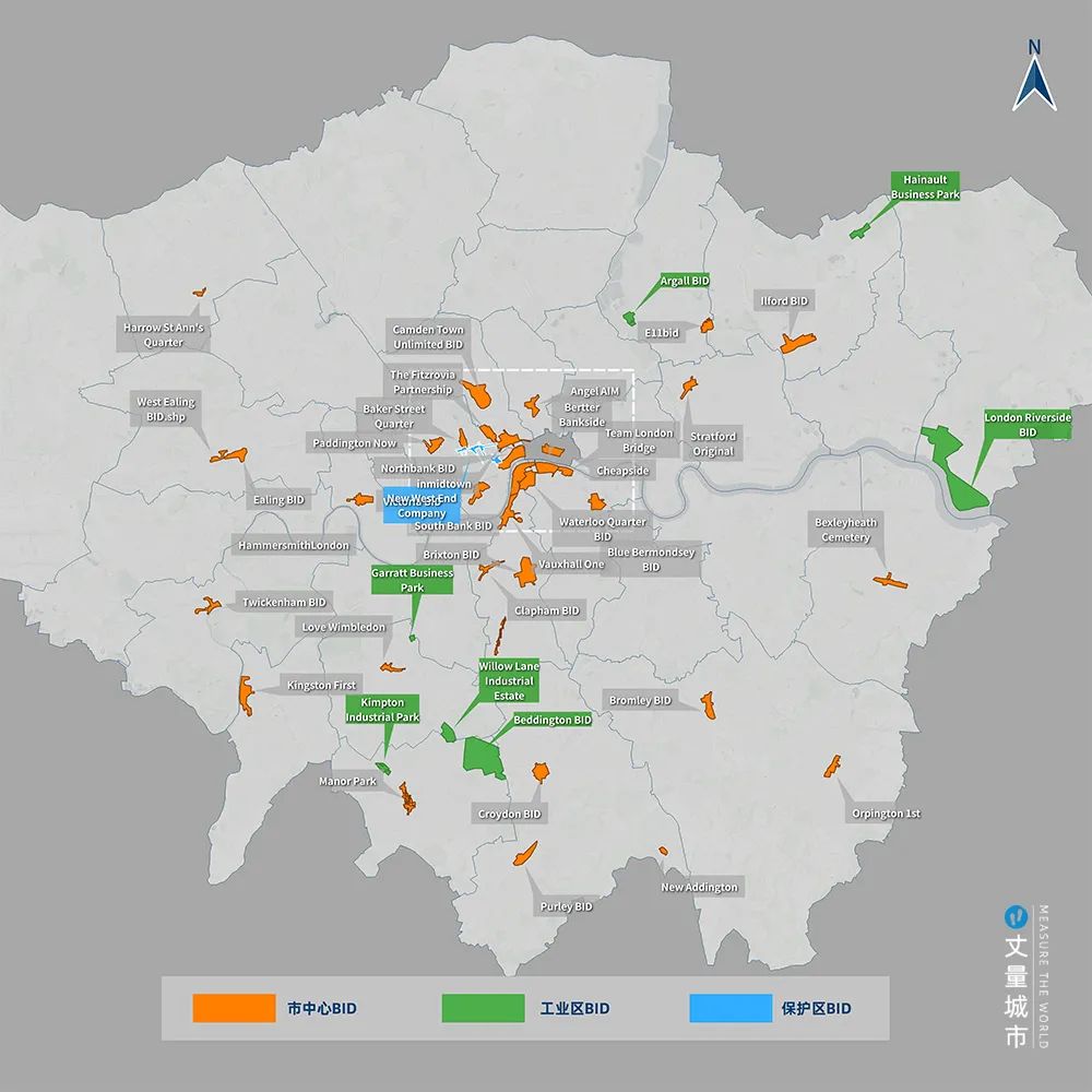 英國BID模式(Business Improvement District),即建立商業促進區。主要針對發展成熟的街區進行商業化提升,從而調和「寸土寸金」所導致的公、私雙方的利益沖突。