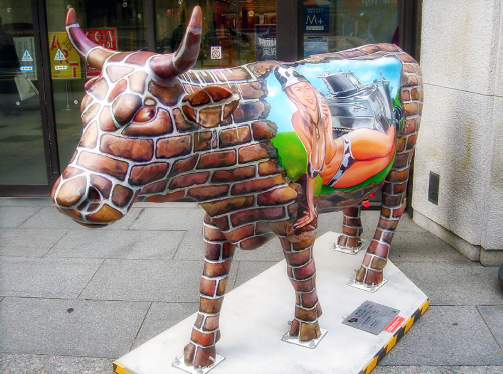 ▼ 在主軸大道設置「丸之內之牛」藝術雕塑項目(來源:flickr)