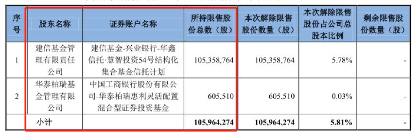 根據(jù)公開數(shù)據(jù)整理,在以上股份解除限售后,建信基金進行了部分減持,但大部分股票仍然還留在手里。