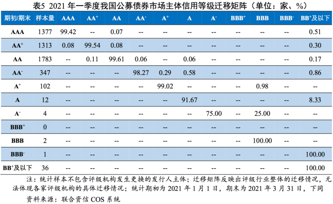2. 信用等級遷移數量相對較少,主要級別均呈現向下遷移趨勢