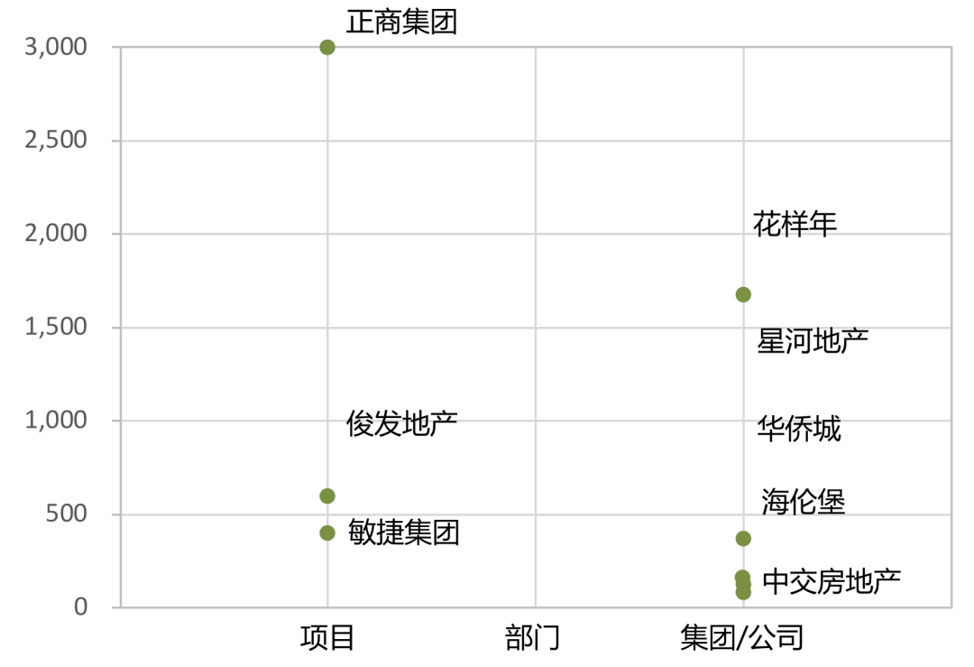 與TOP50房企不同,城市更新業(yè)務(wù)因?qū)χ黧w資本及渠道要求較高,僅11家TOP51-100房企積極布局城市更新業(yè)務(wù)板塊,城市更新項(xiàng)目建面主要集中在1000萬平方米以內(nèi)。