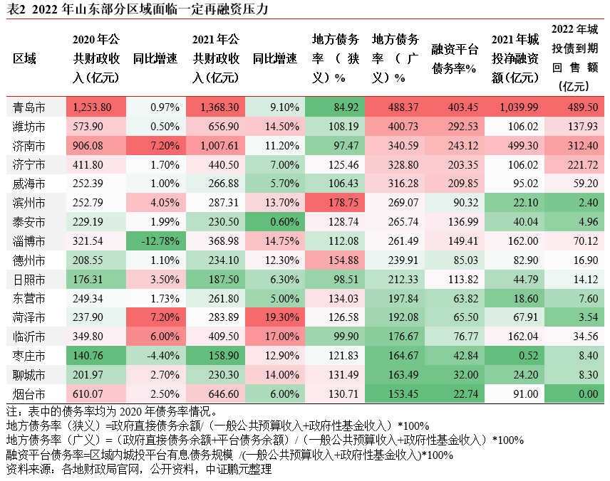 原標(biāo)題: 2022年山東省城投債到期回售壓力研究