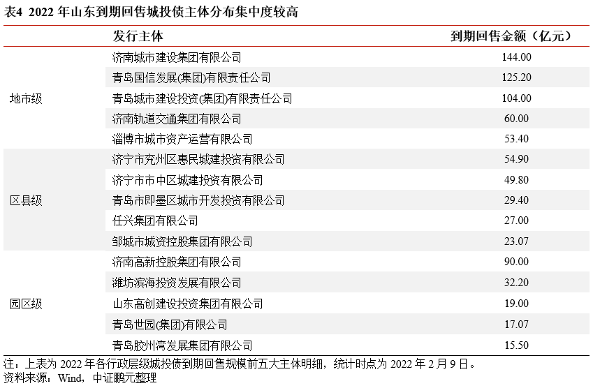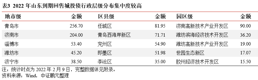 二、山東省2022年到期回售城投債區(qū)域和主體分布集中度較高,且各區(qū)域間分化較為明顯