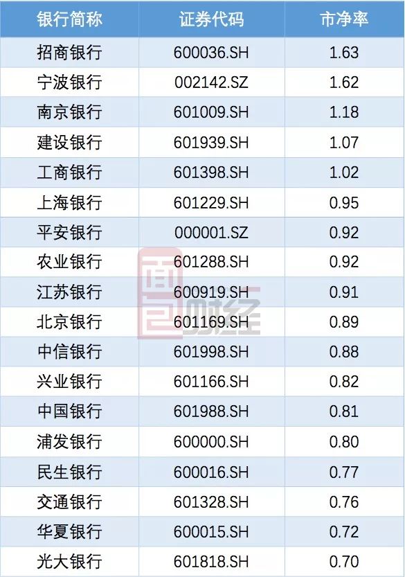統計顯示,上述18家銀行的市凈率平均值為0.96倍,中位數為0.9倍。銀行股集體破凈除了股價走勢疲軟之外,還有一個原因則是估值切換因素。隨著每股利潤累計,在公布2017年財務數據之后,在股價不變的情況下,市凈率也會下降。