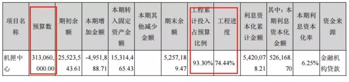 2016年機匣中心的完工進度已經(jīng)達到92.74%,而一年之后的2017年,其完工進度卻變?yōu)榱?4.44%。同時,該項目預(yù)算數(shù)也發(fā)生了變化。在2017年以前的財報中,機匣中心預(yù)算金額均為3.03億元,甚至在2017年半年報中,項目預(yù)算也還是3.03億元,完工進度也已達到93.24%。而到了2017年年報中,項目預(yù)算突然變?yōu)榱?.13億元,同時完工進度倒退近20%。