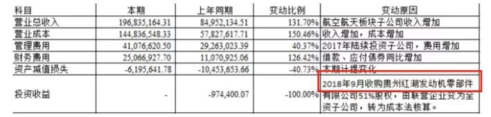 事實上,這筆收購發(fā)生在2017年。公司曾在2017年年度報告中表示:本期收購貴州紅湖發(fā)動機有限公司51%股權(quán),由聯(lián)營企業(yè)變?yōu)槿Y子公司,轉(zhuǎn)為成本法核算。
