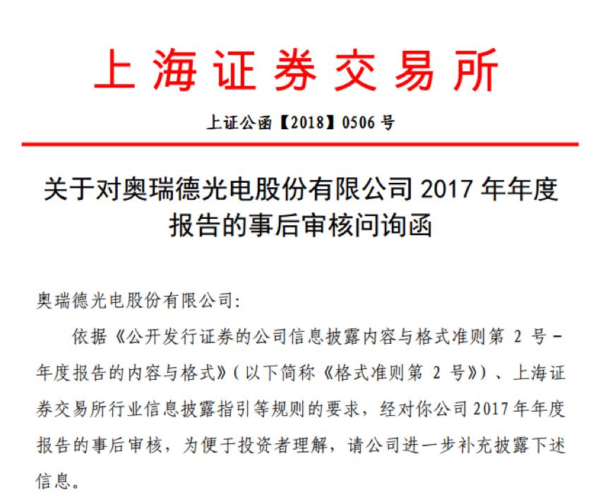 上交所也于2018年5月14日對奧瑞德下發(fā)了問詢函,針對公司分季度數(shù)據(jù)異常、應(yīng)收賬款及關(guān)聯(lián)方欠款、業(yè)績承諾及補償、債務(wù)風(fēng)險等方面進行了問詢。