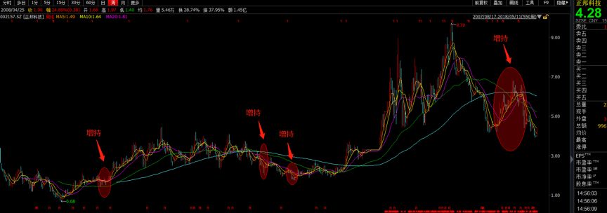 比如:2009年獨(dú)立董事章衛(wèi)東在在股價(前復(fù)權(quán))低位少量增持,2012年11-12月大股東正邦集團(tuán)增持180萬股,參考市值1248.61萬元;2013年3-6月正邦集團(tuán)再次累計(jì)增持195.07萬股,累計(jì)參考市值1268.81萬元。