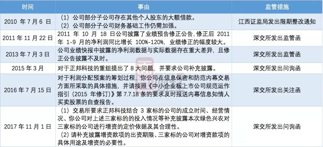 從2010年至2017年,正邦科技幾乎年年都能收到來自監(jiān)管部門的“問候”,以下為根據(jù)公開信息整理的相關(guān)事項(xiàng):