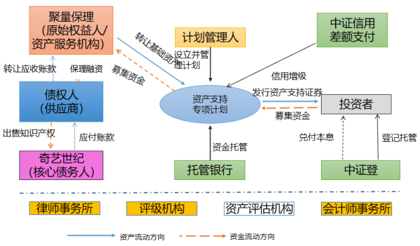 愛奇藝是首單套用反向保理的供應鏈模式的知識產權ABS產品,愛奇藝對上游供應商存在大量長期應付的版權許可費、專利許可費、商標許可費,作為核心企業將基于知識產權許可使用的應付賬款作為基礎資產發行ABS產品。