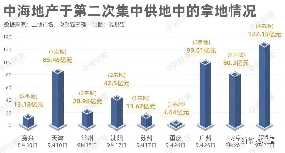 而據(jù)統(tǒng)計,僅中海一家,9月以來先后在天津、常州、蘇州、沈陽、重慶、廣州、南京、深圳等地拿下22宗地塊,累計花費(fèi)超495億元。