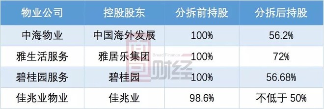 根據佳兆業物業聆訊資料披露:佳兆業集團擁有佳兆業物業98.6%的權益,分拆及上市完成后,佳兆業集團將擁有佳兆業物業不少于50%的權益,佳兆業物業仍為佳兆業集團的附屬公司。