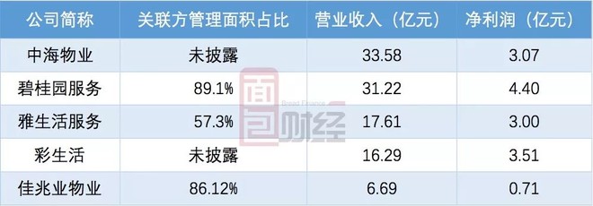 即便被分拆之后,這些物業管理公司的業務仍然很難擺脫對母公司或者關聯方的依賴,2017年的相關數據如下表:
