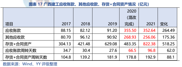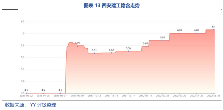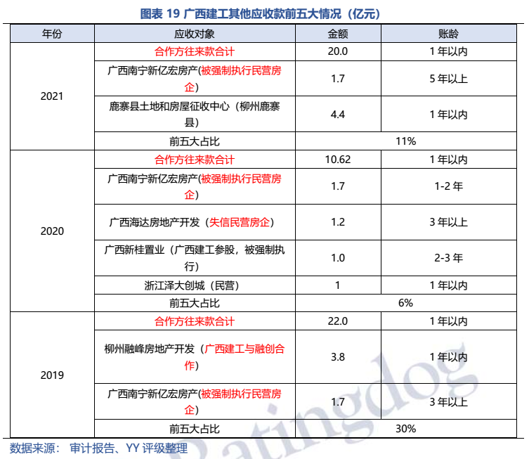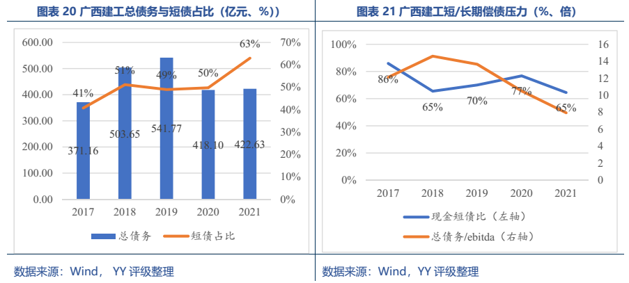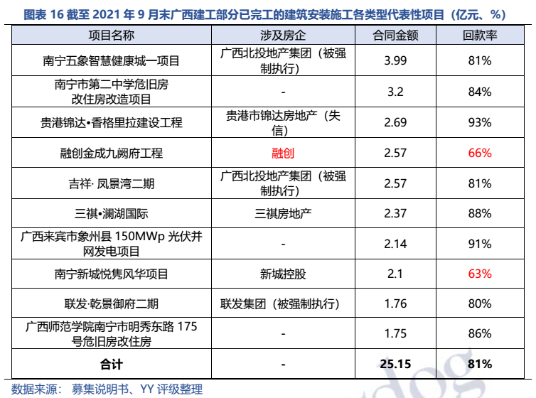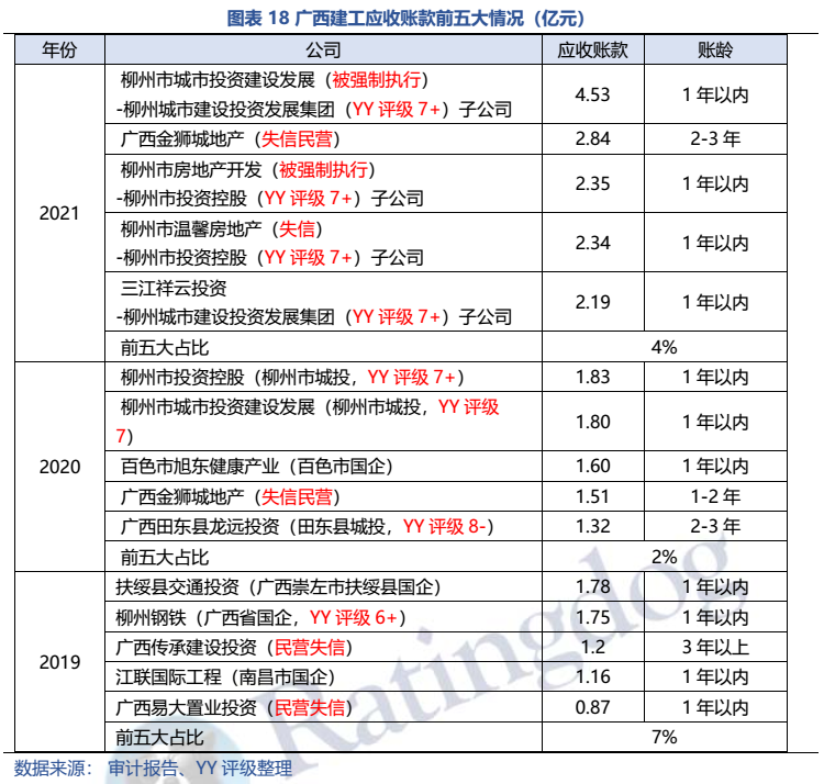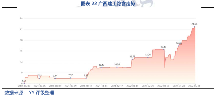 梳理分析下來(lái),可知西安建工混改完成后新簽合同大幅增加,同時(shí),房建占比提升,展業(yè)區(qū)域由西安市內(nèi)拓展至西北區(qū)域;對(duì)綠地風(fēng)險(xiǎn)敞口51億元,其他對(duì)手方以民營(yíng)房企和弱國(guó)企為主,資質(zhì)較弱;綠地展期后,暫無(wú)前臺(tái)成交,預(yù)計(jì)后續(xù)隱含將明顯弱化。廣西建工混改完成后業(yè)務(wù)變化不大,仍以房建為主,集中在廣西展業(yè);與綠地資金牽連不大(或未披露),但業(yè)務(wù)對(duì)手方資質(zhì)弱,以出險(xiǎn)房企、失信民營(yíng)房企和弱城投為主;在年內(nèi)到期或行權(quán)債券約60億元的情況下,綠地展期后隱含急劇弱化,YY隱含飆升至20以上。