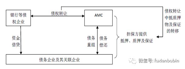 一是在債權轉讓中抵質押物及保證的轉移環節,做好操作風險管控。重組方一方面與銀行等債權企業收購債權,另一方面與債務企業及其關聯方達成重組協議,通過還款時間、還款金額、還款方式、擔保抵押等一系列的重組安排,實現未來債權的回收(交易流程如圖示)。
