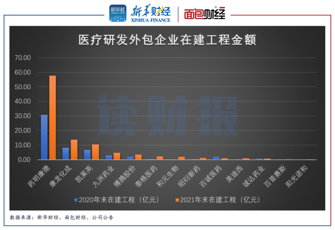 圖2:2020年和2021年部分醫(yī)療研發(fā)外包企業(yè)在建工程規(guī)模