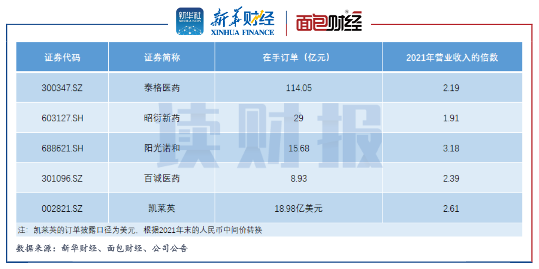 部分醫(yī)療研發(fā)外包企業(yè)在最新年報中披露了在手訂單情況。相較2021年的營業(yè)收入,這些企業(yè)在手訂單的金額均接近或者超過前者的2倍,一定程度上保證了中短期業(yè)績增長的持續(xù)性。