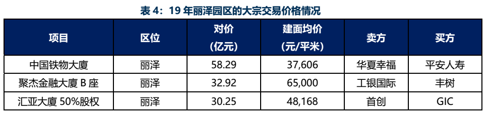 根據(jù)目前成功轉(zhuǎn)讓的項(xiàng)目中國(guó)鐵物大廈,假設(shè)該對(duì)價(jià)已包含了建設(shè)成本,則鐵物大廈的轉(zhuǎn)讓建面成本遠(yuǎn)低于區(qū)域內(nèi)成本,為聚杰金融大廈B座對(duì)價(jià)均價(jià)的57.86%、匯亞大廈的78.07%。