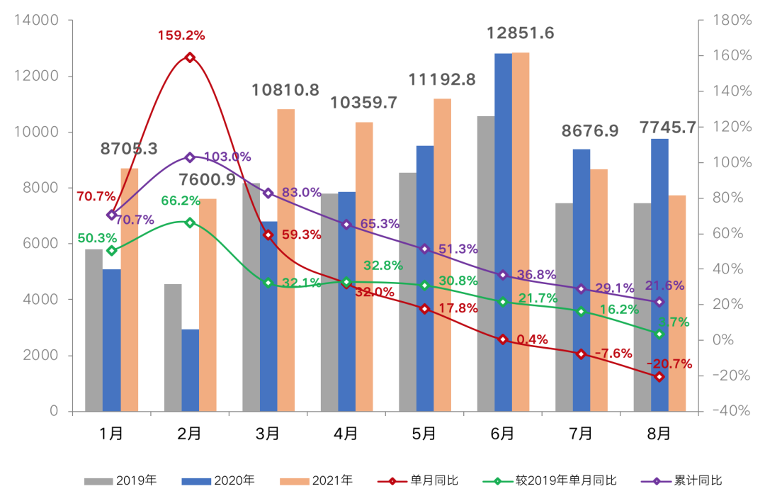 百強房企業績表現也不盡如人意,8月百強房企銷售操盤金額7745.7億元,同比下降20.7%、環比下降10.7%。繼7月業績同比首次出現下跌之后,再度下跌超兩成。