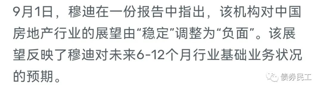 2、同樣是在2021年9月1日,穆迪評級將中國房地產行業的展望由“穩定”調整為“負面”。當然,這不是房地產行業第一次評級展望被調整為負面,此前的2021年7月27日,中誠信國際的公眾號發布公告,將中國房地產行業展望由穩定調整為負面。需要注意的是,穆迪評級持有中誠信國際30%的股份。