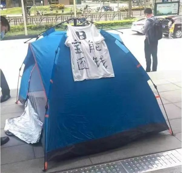 前些天,討錢的小伙伴直接帶上帳篷,睡在了總部門口。