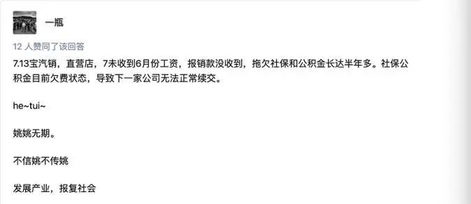 年初,寶能被爆出裁員、欠薪、停繳社保,其中,寶能生鮮、寶能汽車板塊的被欠薪較普遍。
