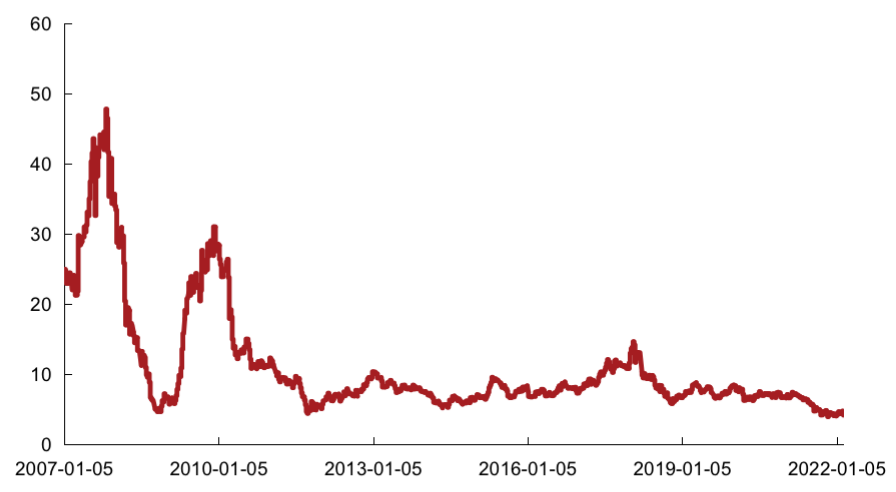 備注:恒生中國內地地產指數的推出主要是為了反映前10只市值最大、流通性最高,在香港上市但主要營業收入來自中國內地的房地產股票表現。當前成分股共10只,分別為:中國海外發展、世茂集團、龍湖集團、華潤置地、龍光集團、碧桂園、中國恒大、恒大物業、碧桂園服務、融創中國。