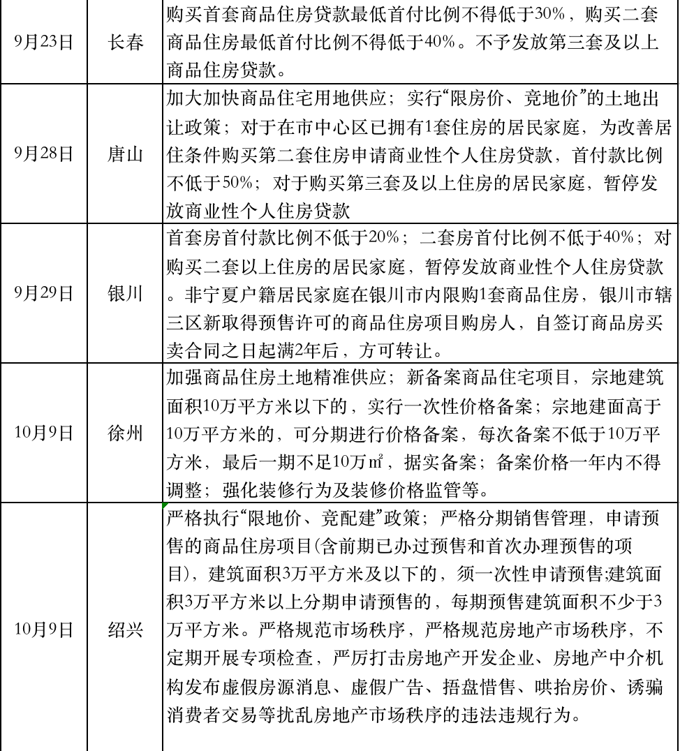 值得注意的是,三季度以來,多個(gè)熱點(diǎn)城市出臺(tái)樓市調(diào)控背景下,樓市整體平穩(wěn)運(yùn)行,但三四線城市打補(bǔ)丁政策趨勢(shì)依然持續(xù),“房住不炒”全面升級(jí)。