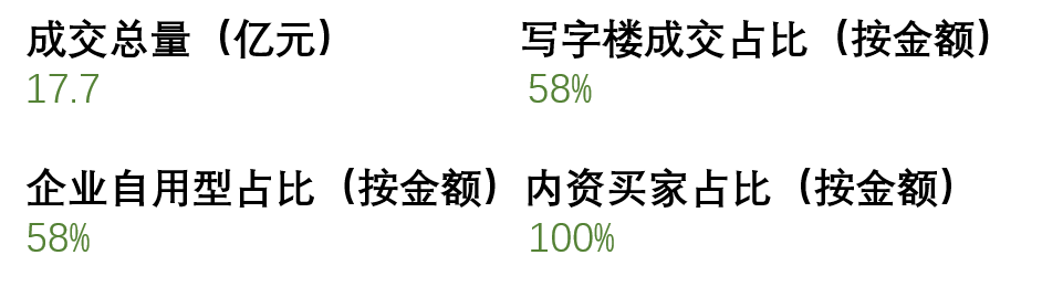 自用企業(yè)購置辦公樓相較于投資更加活躍,占比達58%,某自用買家購置豐臺金茂廣場一棟寫字樓。核心區(qū)域的更新改造方興未艾,翰同資本收購奧體區(qū)域一座小型零售單體,后期將改造為辦公。
