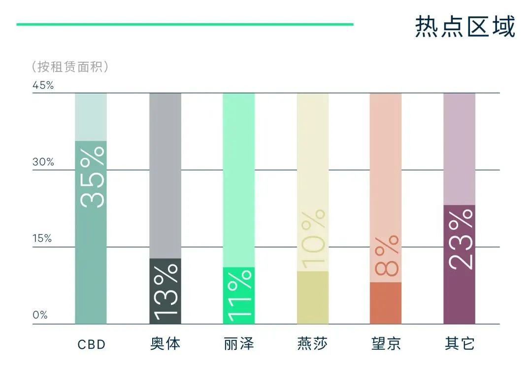 隨著租戶對共享辦公的使用和業(yè)主接受度的提升,第三方辦公繼續(xù)增設(shè)新點,新租占比超過專業(yè)服務(wù)業(yè)位列第三。