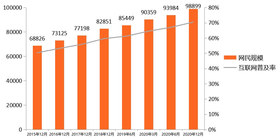 圖 2:2015-2020年我國(guó)網(wǎng)民規(guī)模與互聯(lián)網(wǎng)普及率