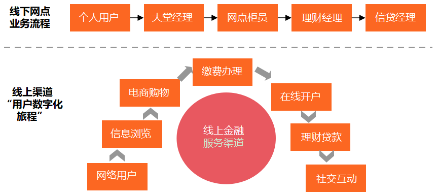圖 3:線下網(wǎng)點(diǎn)與線上渠道辦理業(yè)務(wù)的流程差異點(diǎn)